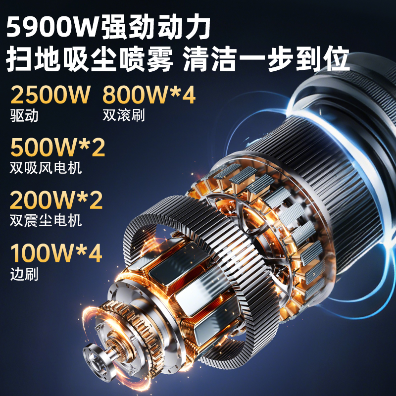 卓越清潔,一機(jī)搞定, 強(qiáng)勁雙吸風(fēng)電機(jī),風(fēng)量大、風(fēng)壓高,搭配大面積過濾系統(tǒng),吸塵徹底無死角,灰塵、碎屑一網(wǎng)打盡;強(qiáng)力降塵噴霧,大水箱支持長時間霧化作業(yè),有效抑制揚(yáng)塵,打造潔凈環(huán)境;安全至上,智控護(hù)航;多重電控保護(hù):過流、欠壓自動預(yù)警,下坡防超速、坡道防溜坡,搭配電磁剎車,復(fù)雜地形也能穩(wěn)如磐石;高清倒車影像:狹窄區(qū)域倒車無憂,避免碰撞,操作更安心。