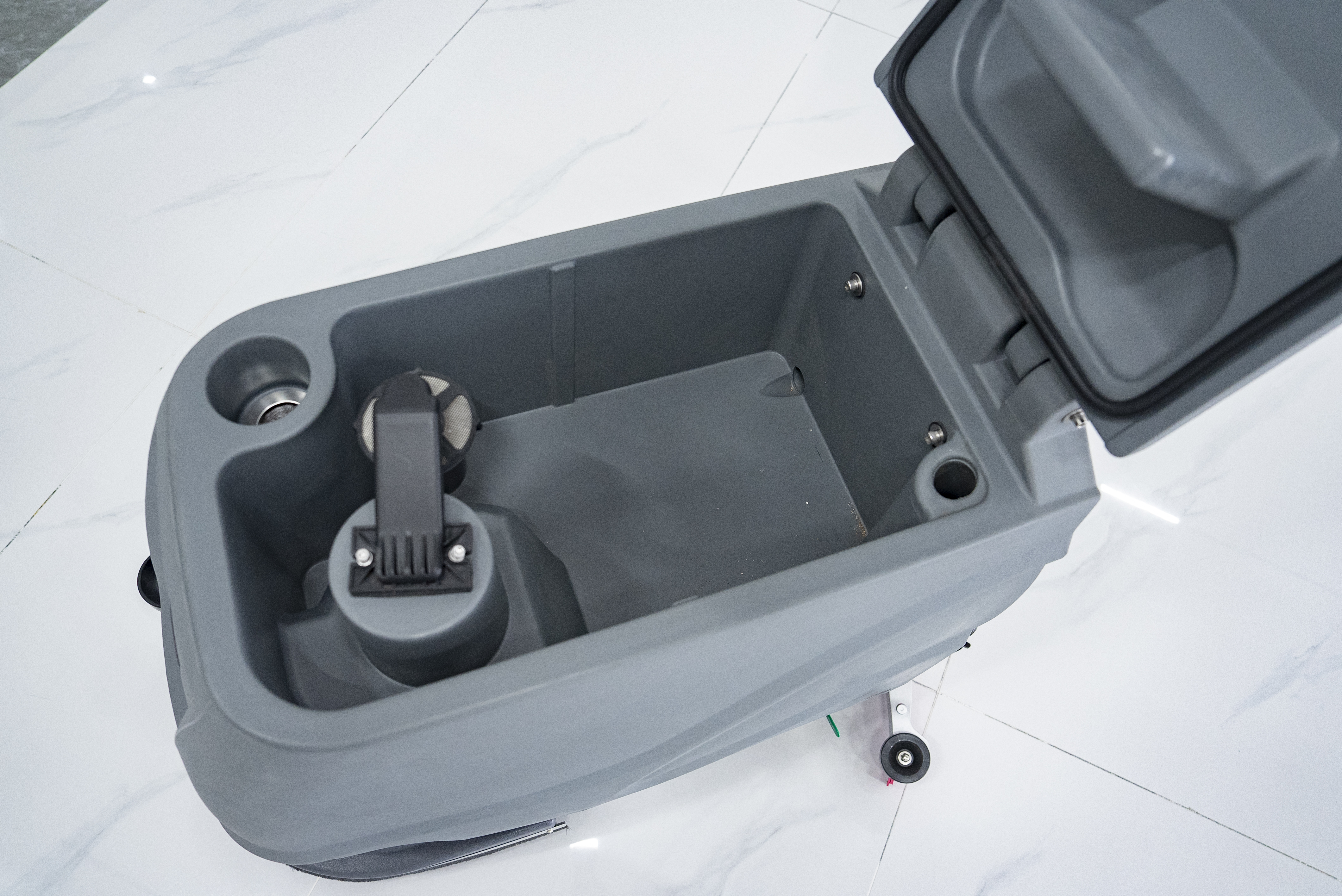采購背景:工廠車間2000㎡精鋼砂地面,需手推式洗地機,人工清潔效率低、灰塵難清。